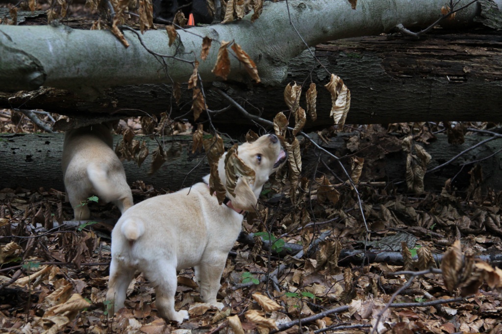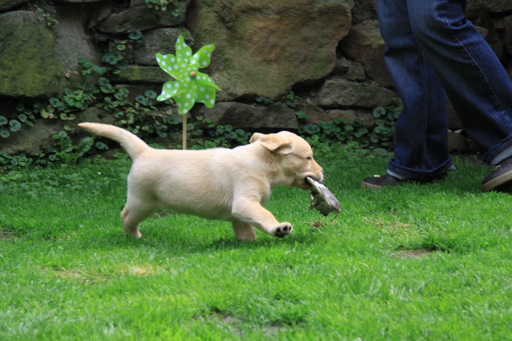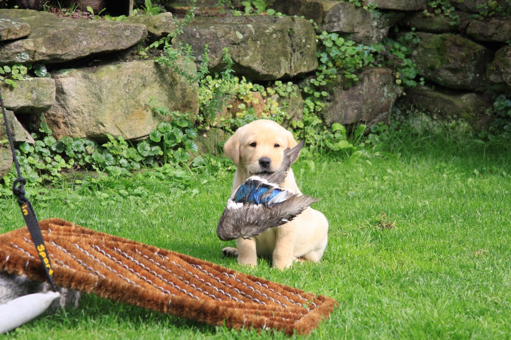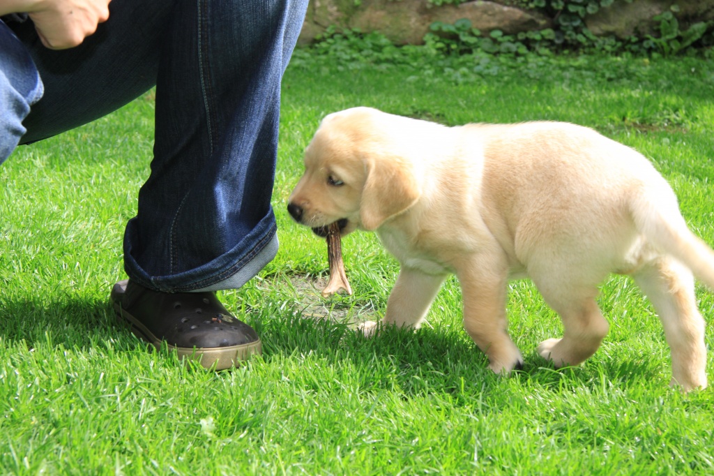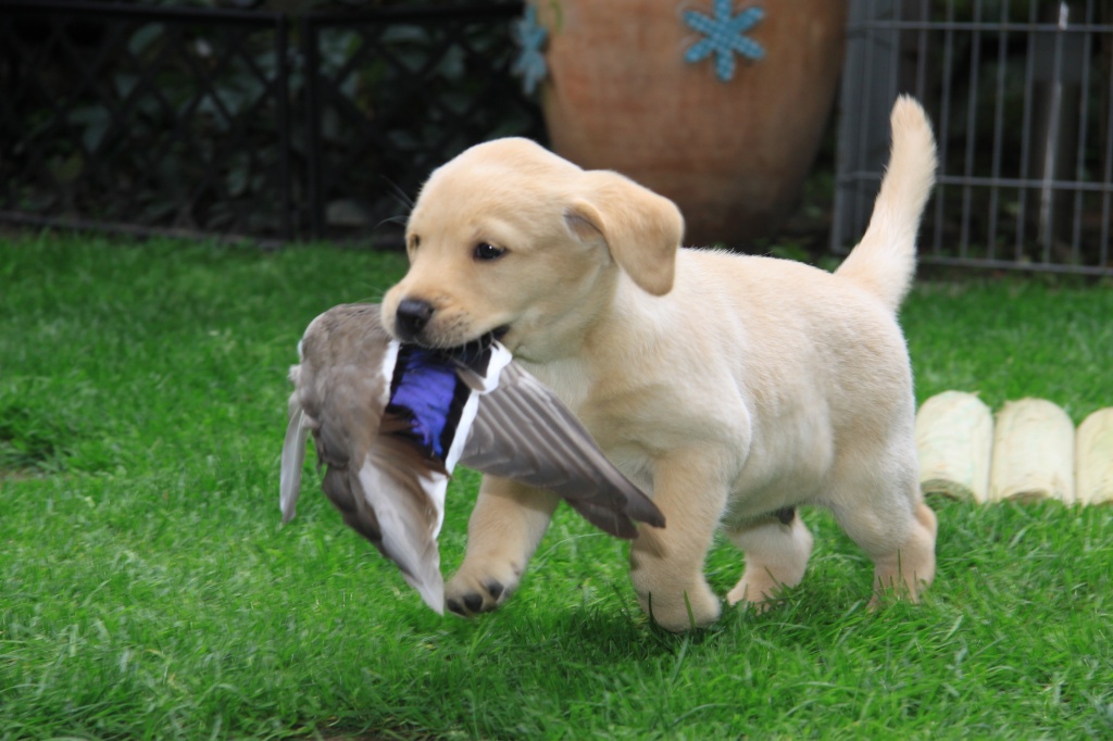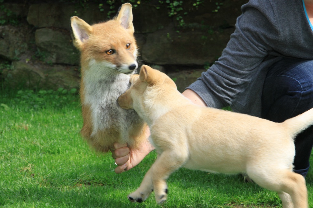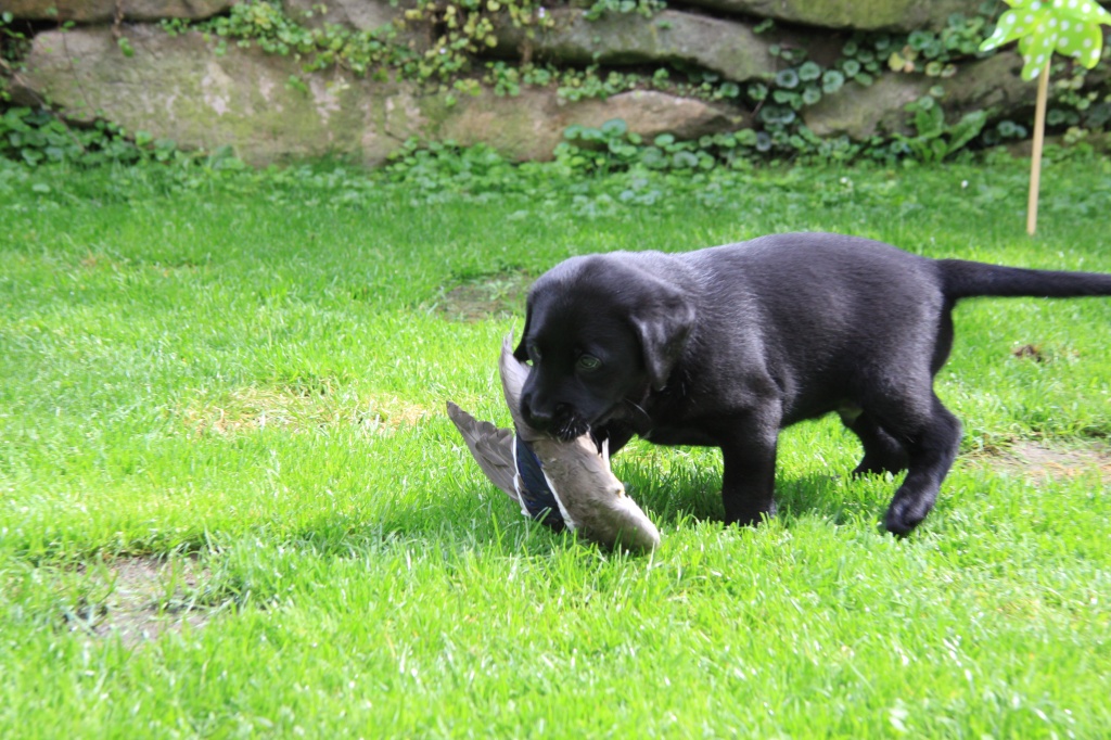 Auch haben die Welpen „einiges Wildes“ von uns bekommen. Fuchts, Waschbär, Rehgehörn und -lauf, Entenschwinge und Co. kamen gut an und werden fleißig apportiert!