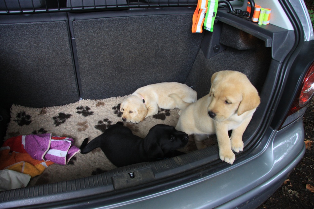Sie hatten viel Besuch und auch der erste Ausflug mit einer kleinen Autofahrt in den Wald stand an. Alle 3 Welpen haben sich wohlgefühlt, die neue Umgebung erkundet und die vielen Gerüche wahrgenommen. Mama Gwen ist natürlich als gutes Vorbild vorausgegangen.